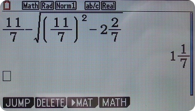 Anders als beim fx-9860 G II lassen sich gemischte Zahlen jetzt auch innerhalb von Wurzeln und Potenzen eingeben (siehe Abbildung).